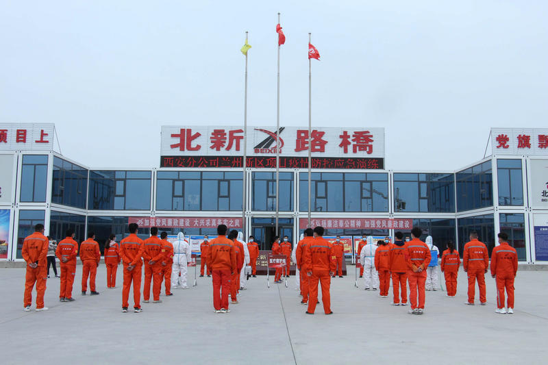 以“演”代“練”,以“練”筑“防”。3月30日,北新路橋集團西安分公司蘭州新區(qū)項目組織開展疫情防控應急演練,對突發(fā)疫情應急處置能力進行檢驗