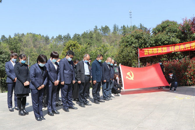 時屆清明祭先烈,翠柏凝春慰英魂。在溫順的春風里,訴不盡對革命先烈的無限深情、道不盡對烈士英魂的無盡哀思。烈士陵園松柏蒼翠,草木蔥蘢,巍峨聳立的革命烈士紀念碑顯得格外莊嚴肅穆。上午11時許,祭掃活動正式開始。首先全體人員向紀念碑獻上花籃,面向紀念碑集體唱響國歌并默哀一分鐘。在支部書記的帶領(lǐng)全體人員集體瞻仰了革命烈士紀念碑,向烈士獻上獻花,表達深切的哀思和崇高的敬意,讓全體人員接受了一次深刻的黨性教育。