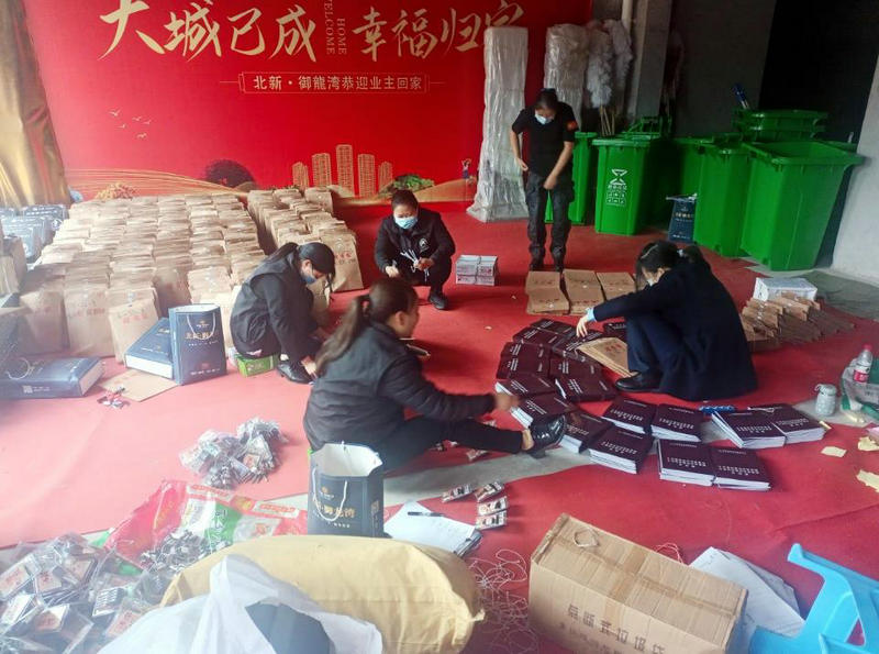 重慶合川訊(通訊員 楊雅茜)北新投資公司所屬重慶北新宜邦物業(yè)公司北新·御龍灣項目八街區(qū)定于2022年3月29日開始交房。集中交房進(jìn)入倒計時,北新·御龍灣項目在八街區(qū)原定人員配置基礎(chǔ)上,緊急抽調(diào)一、二、三、五、六街區(qū)人員擴(kuò)建八街區(qū)接房工作籌備小組,全力配合做好八街區(qū)交房物料的籌備工作。在此期間,工作組成員連續(xù)多天加班搬運(yùn)物品、清點資料,在規(guī)定時間內(nèi)完成了交房物料的籌備。