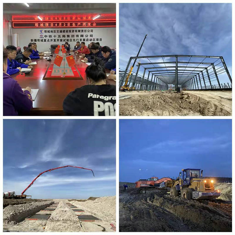 本網(wǎng)訊(呂奎元) 4月4日凌晨02:00,本該萬籟俱寂的深夜,中鐵十五局集團(tuán)塔城項(xiàng)目施工現(xiàn)場卻是機(jī)械轟鳴。A1地塊多處進(jìn)行混凝土澆筑,A2-1和A2-2地塊鋼結(jié)構(gòu)吊裝整齊劃一,項(xiàng)目管理人員穿梭在各工區(qū)之間,針對(duì)現(xiàn)場混凝土施工、修繕便道等工作進(jìn)行現(xiàn)場指揮,施工大干場面熱鬧非凡。