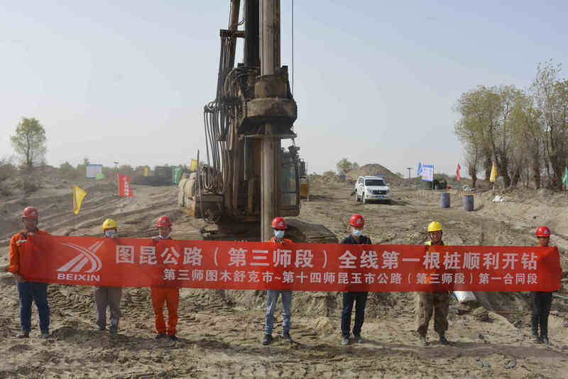 圖木舒克訊(通訊員 梁毅)4月15日,伴隨著機器的轟鳴聲,旋挖鉆機緩緩破開土層,由兵團交建公司負責承建的三師圖木舒克市-十四師昆玉市公路(三師段)第一標段沖溝一中橋首根樁基順利開鉆,標志著橋梁施工正式拉開序幕。