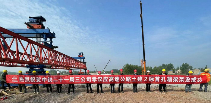 本網(wǎng)湖北孝感4月18日訊(通訊員 賈瑛 王磊)今天上午,伴隨著清脆的禮炮聲和機(jī)械的轟鳴聲,由中鐵二十一局三公司承建的孝漢應(yīng)高速公路土建二標(biāo)項(xiàng)目首片箱梁成功架設(shè)。此次首片梁的成功架設(shè),標(biāo)志著該項(xiàng)目梁板架設(shè)施工正式拉開(kāi)序幕。
