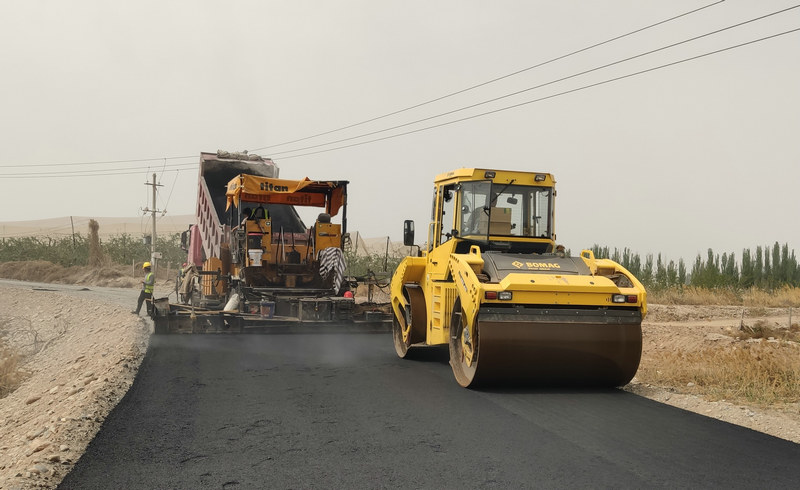 阿拉爾訊(通訊員 張梁 李云峰)4月21日,由兵團交建公司承建的第一師五團機耕二連-玉爾袞南工業(yè)園公路項目開始瀝青混凝土路面攤鋪。施工現(xiàn)場機械轟鳴,施工人員渾汗如雨,呈現(xiàn)出一幅大干的景象,項目部全體人員都在努力為公路早日建成,喜迎黨的二十大勝利召開貢獻自己的智慧和汗水。