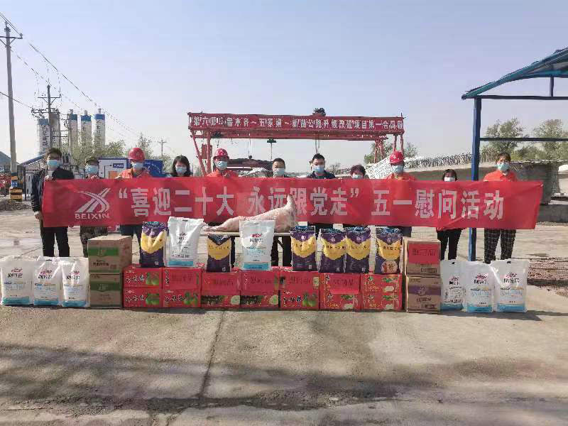 烏五新項(xiàng)目屬北新集團(tuán)重點(diǎn)市政工程,施工建設(shè)標(biāo)準(zhǔn)要求高、施工難度大,為兌現(xiàn)6月小型預(yù)制構(gòu)件標(biāo)準(zhǔn)化項(xiàng)目建設(shè)目標(biāo),項(xiàng)目部大干快上全力推進(jìn)標(biāo)小型預(yù)制構(gòu)件場(chǎng)標(biāo)準(zhǔn)化建設(shè)。在“五一”節(jié)即將到來(lái)之際,兵團(tuán)交建公司總會(huì)計(jì)師周偉一行為項(xiàng)目全體員工送上精心準(zhǔn)備的羊、水果、米、面等慰問(wèn)品,并代表公司向全體項(xiàng)目員工表示了衷心感謝,叮囑全體員工做好個(gè)人防護(hù),加強(qiáng)疫情防控安全意識(shí),力爭(zhēng)在5月中旬超前完成小型預(yù)制場(chǎng)標(biāo)準(zhǔn)化建設(shè)目標(biāo)。