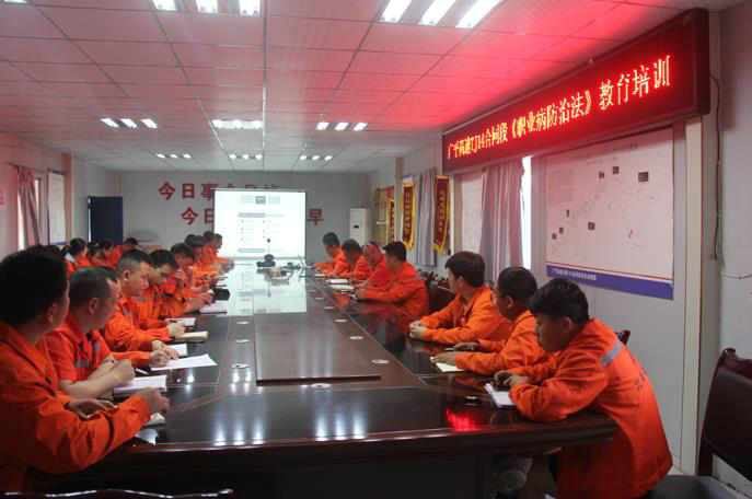 活動(dòng)中,該項(xiàng)目部采取線上線下相結(jié)合的方式積極營(yíng)造關(guān)心關(guān)注職業(yè)病防治的濃厚氛圍。通過組織集中學(xué)習(xí)講授,在辦公區(qū)、宿舍生活區(qū)懸掛標(biāo)語(yǔ)、設(shè)置宣傳展板,利用各類媒體以推送美篇文章、組織線上問卷調(diào)查、微信程序知識(shí)答題等途徑讓職工和農(nóng)民工全面系統(tǒng)了解和掌握職業(yè)病防治的相關(guān)法律法規(guī)、政策和知識(shí)。