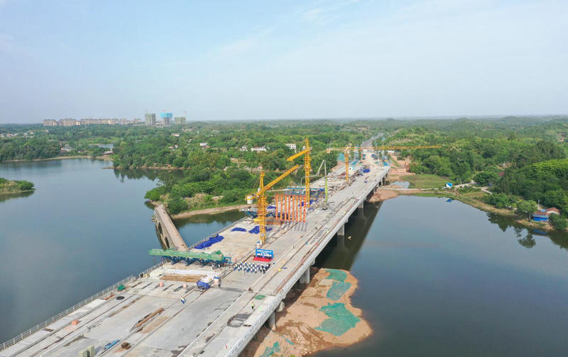 三岔湖大橋位于成都東部新區(qū)董家埂鎮(zhèn)境內(nèi)、三岔湖最南端,一端接環(huán)湖路東段,一端接環(huán)湖路仁壽段,是三岔湖環(huán)湖路中至關(guān)重要的一段。據(jù)悉,大橋全長548.68米,總寬45m,雙向6車道以及中央隔離帶、側(cè)分帶、人非機(jī)動(dòng)車道等功能區(qū)域,全橋?yàn)?40榀30米預(yù)制箱梁和230m懸臂現(xiàn)澆連續(xù)梁主橋。大橋合龍后,周邊居民的出行條件也將得到改善。