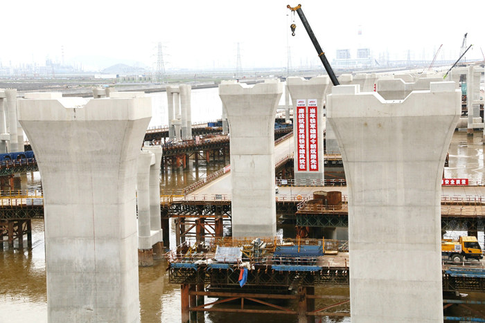 本站消息 日前,中鐵十五局集團(tuán)杭甬項目濱?;ネㄖ骶€橋墩身完工。
