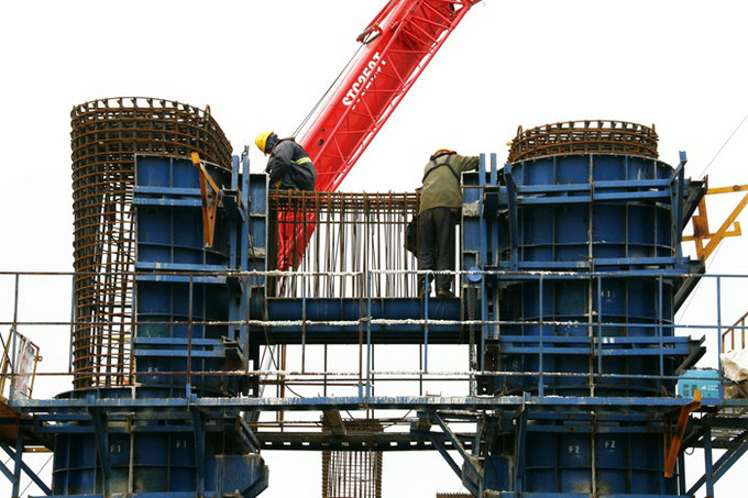 “五一”期間,中鐵十五局集團杭甬復(fù)線項目照常施工,濱?;ネńㄖさ匾廊皇菣C聲隆隆、履帶吊和汽車吊揮動著大臂、作業(yè)工人像燕子一樣靈活地攀爬在高橋墩上安裝模具,一派緊張、繁忙、熱火朝天的景象。