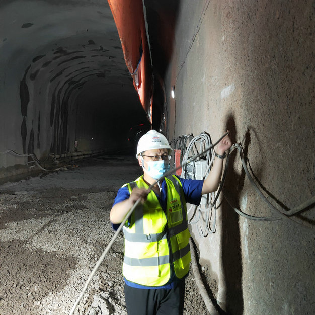 16標(biāo)項目測量工梁西祖在中梁山隧道現(xiàn)場精心測量