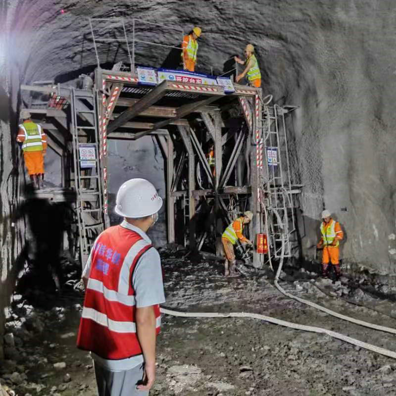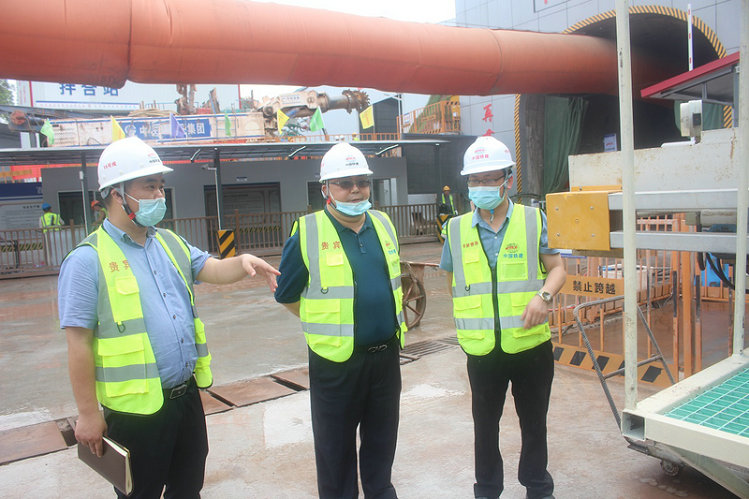指揮長李兵(左2),副指揮長陳華富(左1)在中梁山隧道進口現(xiàn)場檢查