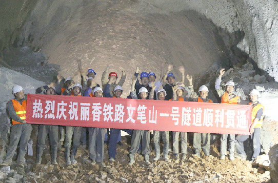 職工們慶祝文筆山一號隧道順利貫通