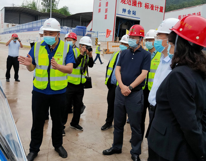 曹元均(左3)與技術人員現(xiàn)場研究創(chuàng)新方案