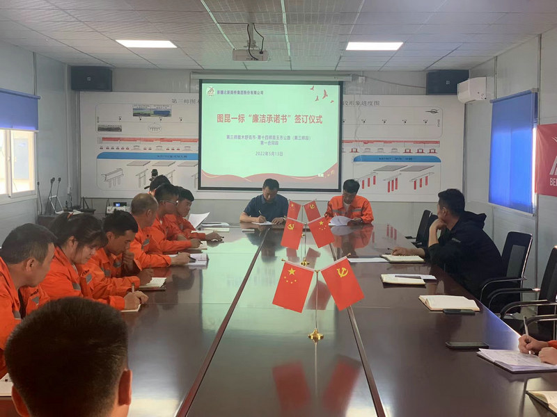 圖木舒克訊(通訊員 梁毅)為持續(xù)深化黨風(fēng)廉政建設(shè),不斷強化干部職工的紀律規(guī)矩意識,創(chuàng)造清正廉潔的良好氛圍,筑牢思想防線。5月13日,北新路橋集團圖昆一標項目部組織開展“廉潔承諾書”簽約儀式。本次簽訂工作覆蓋了項目全體領(lǐng)導(dǎo)班子成員及家屬、重點崗位人員共計11份。