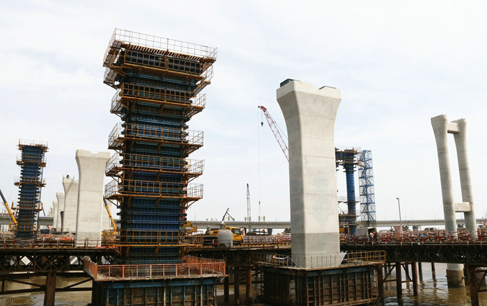 該公司承建的濱海互通全長(zhǎng)10090米,是目前亞洲最大的海上互通立交,設(shè)計(jì)橋墩811座,由主線(xiàn)橋花瓶墩274座、主線(xiàn)拼寬橋墩80座、金塘拼寬橋墩37座、匝道橋420座組成,氣勢(shì)恢宏、蔚為壯觀,是浙江省、寧波市、集團(tuán)和公司的重點(diǎn)建設(shè)項(xiàng)目,對(duì)展示企業(yè)海上施工能力具有名片效應(yīng)。