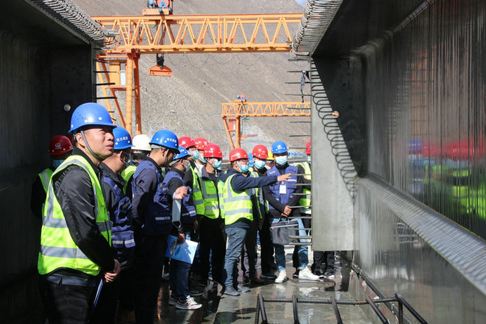 在交流探討中,大家對梁場鋼筋保護(hù)層厚度控制、T梁馬蹄形倒角處氣泡處理、梁端面及橫隔板現(xiàn)澆面鑿毛、噴淋養(yǎng)生紛紛表示贊賞,紛紛拿出手機(jī)拍照留檔,并希望相互之間進(jìn)一步加強(qiáng)溝通交流,互相學(xué)習(xí)共同提升,為拉日項(xiàng)目創(chuàng)建百年示范工程貢獻(xiàn)力量。