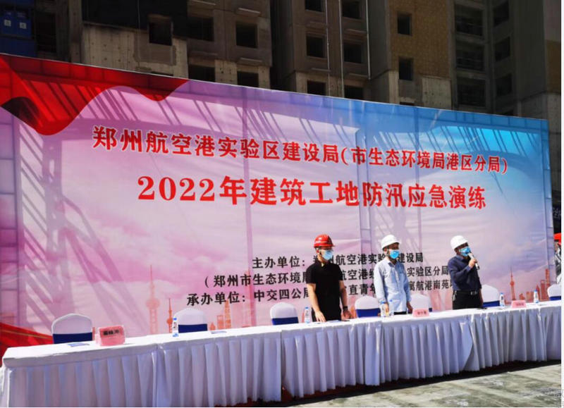 為牢固樹立“生命至上、安全第一”的理念,健全項目安全防控和應急工作機制,切實提高項目防汛應急處置能力,積累防汛實戰(zhàn)經(jīng)驗,增強工人的防汛防災意識,5月17日,鄭州航空港經(jīng)濟綜合實驗區(qū)規(guī)劃市政建設(shè)環(huán)保局在中交四公局第二建筑公司河南省直青年人才公寓項目組織開展2022年建筑工地防汛應急演練。