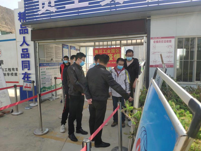 5月20日上午,西寧市南川工業(yè)園區(qū)管理委員會黨委委員張繼波、西寧南川工業(yè)園區(qū)投資發(fā)展有限公司常務(wù)副總經(jīng)理趙明君一行人到中鐵二十一局四公司九年一貫制學校項目,對建筑工地、辦公室、食堂、宿舍等進行防疫檢查。檢查組認真聽取了項目負責人關(guān)于防疫情況的介紹,詳細了解了員工對疫情防控相關(guān)知識和要求的掌握情況。