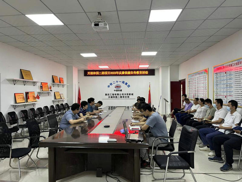5月23日,中鐵二十一局四公司紀委書記李興軍到天福和園二期項目開展反腐倡廉宣傳教育活動,總部紀檢工作部部長陪同,項目部全體員工參加活動。