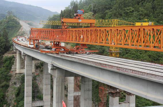 據(jù)悉,柴嶺里大橋位于四川省綿陽市平武縣龍安鎮(zhèn)雙安村安場壩,為左右線分離式橋,此次貫通的右線橋長450m,橋?qū)?2m,最高橋墩50m,共有7*30+6*40m預(yù)應(yīng)力砼簡支T梁65榀。