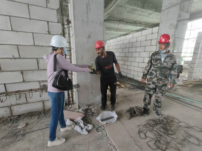 活動中,工會主席李紅還深入昆玉職業(yè)技術學院(一期)項目施工一線慰問看望工人,與他們親切交談,叮囑工人們注意防暑降溫和勞動保護,切實做到安全生產(chǎn)和職業(yè)健康,并感謝工人們克服各種困難,在高溫下堅守崗位,為項目建設做出了積極貢獻。同時,她還反復交待項目部管理人員和各班(組)長,要加強管理,科學制定食譜,注重勞逸結(jié)合,多開展文體活動,嚴格落實高溫天氣作業(yè)安全防護措施,切實做好當前防暑降溫和安全生產(chǎn)工作。