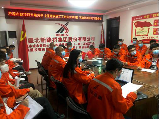 為切實做好農民工工資支付保障工作,維護農民工合法取酬權益。5月24日,在《保障農民工工資支付條例》頒布實施二周年之際,北新路橋集團西安分公司濟源市政工程項目開展學習宣傳《條例》專題會。