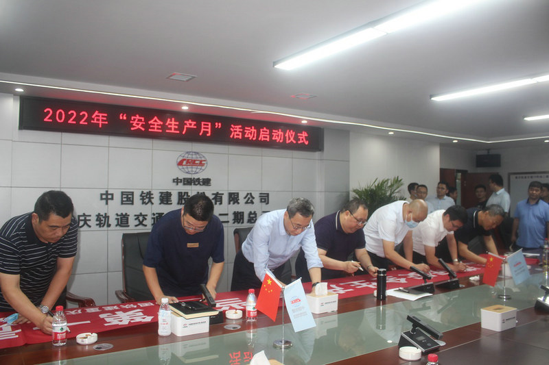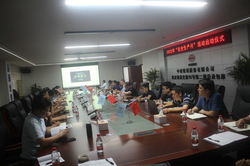5月31日晚,中鐵建重慶軌道交通15號線二期土建工程總承包部舉行“安全生產月”活動啟動儀式,總承包部全員、各標段項目經理、書記、安全總監(jiān)參加,總承包部副指揮長彭程鵬主持。