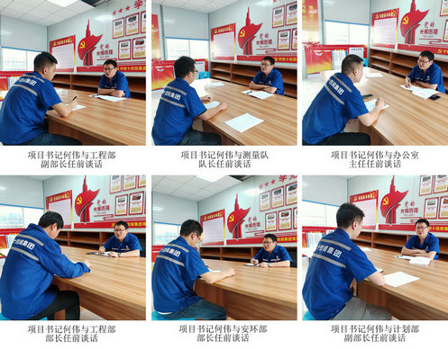 項(xiàng)目黨支部書記何偉與項(xiàng)目部中層干部做任職前談話
