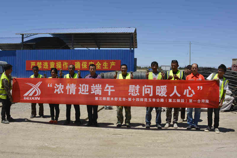 圖木舒克訊(通訊員 梁毅)又逢一年端午至,片片粽葉裹溫情。在端午節(jié)即將來臨之際,6月2日,北新路橋集團(tuán)圖昆公路(三師段)一標(biāo)項(xiàng)目工會(huì)開展“濃情迎端午 慰問暖人心”慰問活動(dòng),把端午的祝福送給堅(jiān)守一線的農(nóng)民工兄弟,感謝一線員工的辛勤工作。