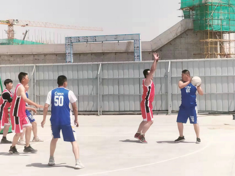 昆玉訊(通訊員周玉明、王亞龍)6月6日,兵團(tuán)建工市政交通集團(tuán)天山建筑工程公司昆玉項(xiàng)目與昆玉職業(yè)技術(shù)學(xué)院(一期)項(xiàng)目在昆玉項(xiàng)目運(yùn)動(dòng)場(chǎng),舉行了一場(chǎng)別開生面的籃球?qū)官?,豐富了干部職工的業(yè)余文化生活。