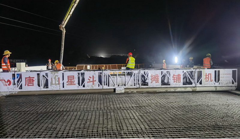 6月8日凌晨,中鐵二十一局四公司天莊高速公路項目部小泉分離式立交右幅橋面鋪裝混凝土澆筑完成,至此,小泉1號大橋和小泉分離式立交2座橋梁橋面系施工全部完成。