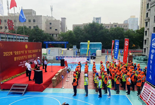(咸陽訊)6月9日上午,中鐵一局建安公司北塬基地改造項目2022年“安全生產月”暨“關愛工友送清涼”活動在項目部駐地隆重舉辦。