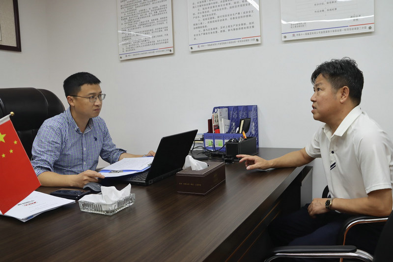 黨支部副書記、項目經(jīng)理劉超(左)為工區(qū)解決施工有關問題