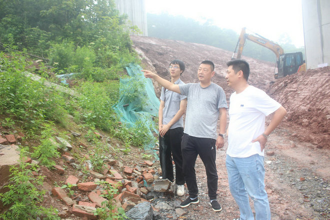 黨支部書記張曉龍(右2)在現(xiàn)場向項目協(xié)調人員安排復地綠化工作