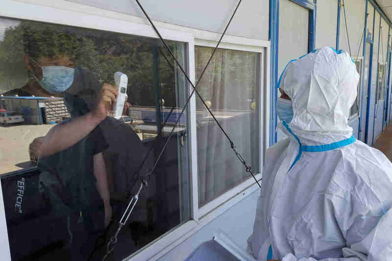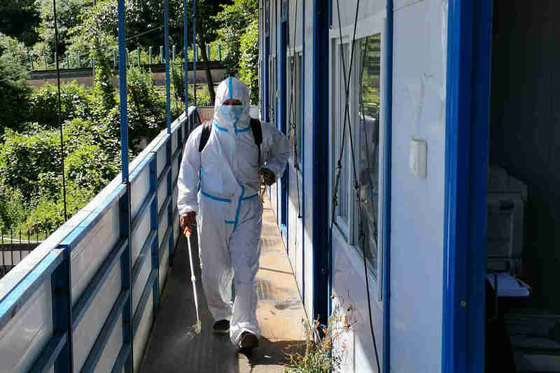此次演練包括體溫測量、“兩碼”查驗、發(fā)現(xiàn)“體溫異常”人員、緊急報告、隔離處置、現(xiàn)場消毒等環(huán)節(jié)。演練現(xiàn)場,工作人員對項目全體人員逐一測體溫、查驗“兩碼”,發(fā)現(xiàn)一職工體溫大于37.3度(佩戴口罩),立即將該員工引導(dǎo)至留觀室隔離,撥打120報警電話,并向公司報備,及時聯(lián)系項目駐地防疫部門前來處置。同時,做好“體溫異常人員”及項目部其他員工的基本信息登記工作,在“體溫異常”職工被順利轉(zhuǎn)運后,對車輛全面消毒、通風(fēng),將車輛進行封存,并對項目部進行全面消殺。