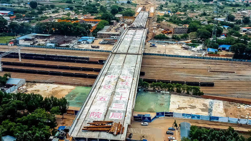 由中鐵五院、中鐵二十三局集團聯(lián)合承建的齊齊哈爾民航路跨線橋工程,是該市“雙向雙軸、一環(huán)九射”主干路網(wǎng)布局的重要組成部分,黑龍江省“百大項目”之一,全長2.793公里,橋梁部分長897.3米。2020年6月開工建設以來,承包單位先后攻克了臨近既有鐵路深基坑、大體積混凝土澆筑、高精度轉(zhuǎn)體支座安裝、大節(jié)段梁部混凝土澆筑、超長預應力束張拉等諸多制約環(huán)節(jié),經(jīng)過720天的不懈努力,安全優(yōu)質(zhì)高效完成了主橋施工任務,為順利轉(zhuǎn)體施工奠定了堅實基礎。