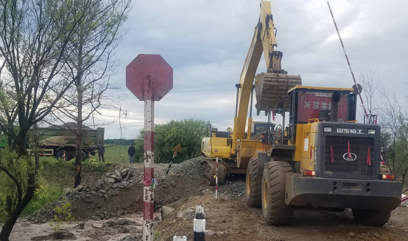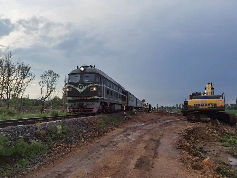 連日來,黑龍江省黑河市境內(nèi)雨水頻繁,受持續(xù)強降雨影響,6月23日下午,北黑鐵路錦河至西崗子區(qū)間K261+600地段突發(fā)洪水30米路基被沖毀,行車受到影響。緊急時刻,正在附近施工的中鐵二十三局集團北黑鐵路項目部迅速啟動應(yīng)急預(yù)案,項目書記張志軍帶領(lǐng)20余名搶險員、3臺挖掘機、2臺裝載機和5輛自卸車及其他搶險車輛,冒雨出發(fā)僅用10分鐘便趕赴水害地段。按照黑龍江省黑河鐵路集團有限責(zé)任公司安排,接受任務(wù)后,迅速展開搶險施工。
