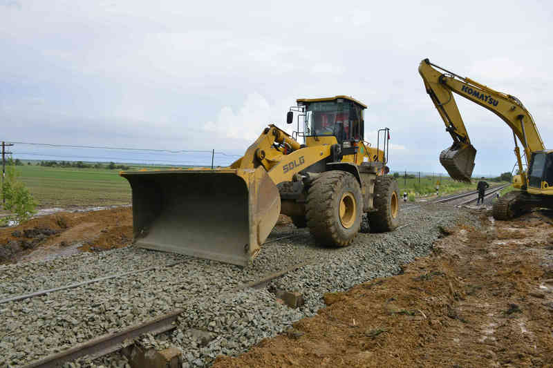 此時水害現(xiàn)場,大雨入注一陣緊似一陣,肆虐的洪水夾雜著折斷的樹枝和石塊從山上奔瀉而下,搶險人員不顧一切與暴風(fēng)雨展開搏擊,趟過深一腳、淺一腳的泥水,人抬肩扛一溜小跑搶運物料,40多分鐘便筑起了一道50余米長的堤壩,阻止洪水再次侵襲路基,為后續(xù)清淤和水毀路基修復(fù)施工打開通道。接著挖掘機、裝載機、自卸車進(jìn)入現(xiàn)場,在機械轟鳴中開始清除滯留的淤泥、石塊等廢物,清理現(xiàn)場平整路基,填筑應(yīng)急儲備砟石115立方米。搶險隊員緊隨其后,整理路基道床、搗固線路、檢查線路幾何尺寸,爭分奪秒修復(fù)線路,檢查線路周邊地區(qū)水害和下游排水疏通情況......