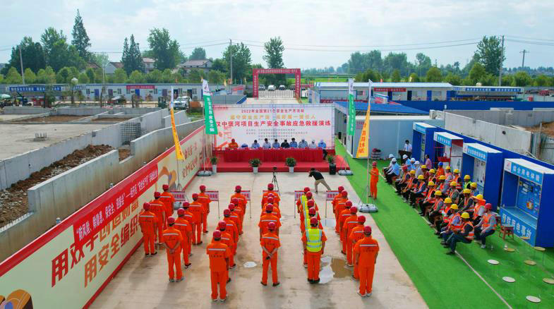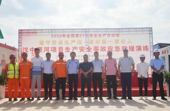 為進(jìn)一步提高安全生產(chǎn)意識(shí),增強(qiáng)突發(fā)應(yīng)急事故處置能力,促進(jìn)安全生產(chǎn)持續(xù)穩(wěn)定發(fā)展,6月25日,北新路橋集團(tuán)西安分公司漢中褒河物流園項(xiàng)目組織開(kāi)展2022年“安全生產(chǎn)月”綜合應(yīng)急救援演練活動(dòng)。漢中經(jīng)濟(jì)技術(shù)開(kāi)發(fā)區(qū)(漢中褒河物流園區(qū)管委會(huì))、經(jīng)開(kāi)區(qū)應(yīng)急管理局、建設(shè)管理局、公安分局、消防救援支隊(duì)及濱河公司等相關(guān)領(lǐng)導(dǎo)赴現(xiàn)場(chǎng)觀摩指導(dǎo)。