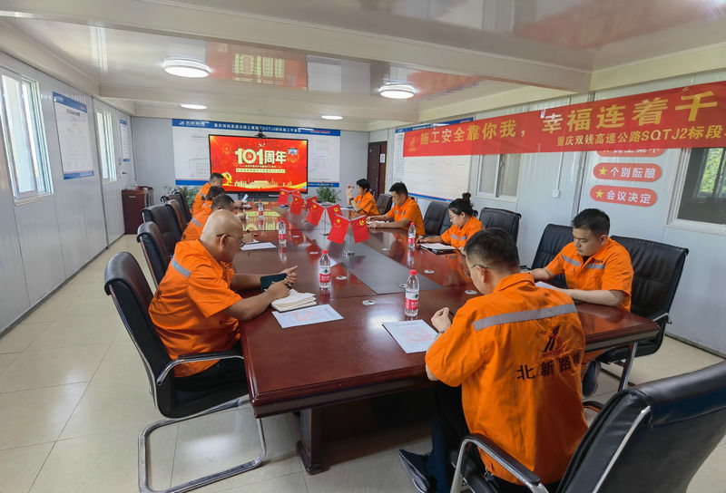 為了營造濃厚慶祝氛圍,黨支部分別組織開展了“七個一”系列活動。即黨支部副書記王少來講授《弘揚(yáng)偉大建黨精神,爭做新時代優(yōu)秀“答卷人”》專題黨課,堅定全體黨員理想信念;觀看紀(jì)錄片《百煉成鋼——從石庫門到南湖》,銘記歷史,鞭策奮進(jìn);齊唱黨史紅歌《沒有共產(chǎn)黨就沒有新中國》,激發(fā)知黨愛黨擁黨熱情;開展一次“回顧黨的十八大以來重大歷史成就”交流座談會,引導(dǎo)廣大黨員干部職工聽黨話、感黨恩、跟黨走;開展一次守初心再宣誓活動,面對黨旗重溫入黨誓詞;檢驗(yàn)理論武裝,開展一次學(xué)習(xí)強(qiáng)國知識測試;開展一次老黨員走訪慰問,根植服務(wù)人民根本宗旨。通過組織主題鮮明、形式多樣、廣泛參與的紀(jì)念活動,緬懷黨的歷史,展望輝煌前程,激勵項目部上下全體黨員進(jìn)一步堅定信心、解放思想、敢于擔(dān)當(dāng),主動服務(wù)項目發(fā)展大局,以最堅定、最自覺、最實(shí)在的行動向黨的生日獻(xiàn)禮!