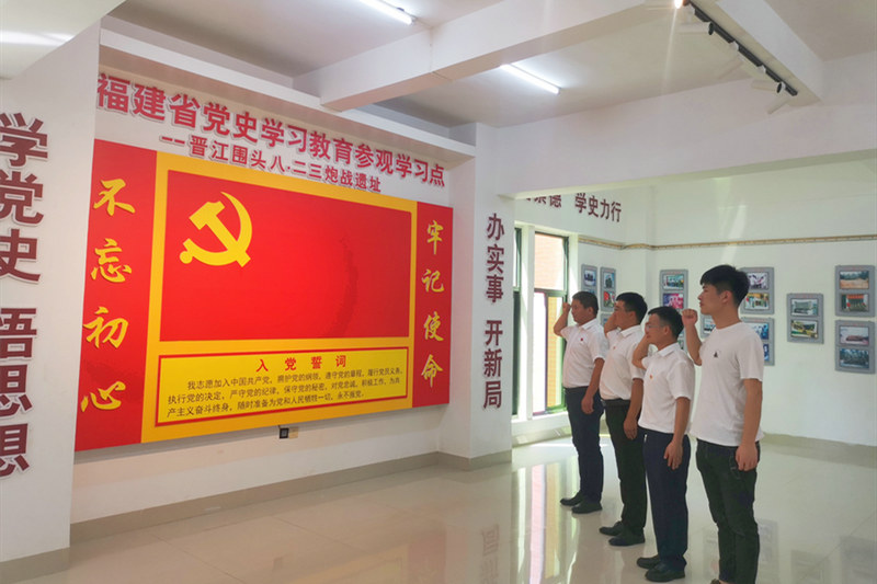在晉江圍頭八二三抗戰(zhàn)遺址場館內(nèi),一路走來,大家看到了遺址中圍頭村這個曾經(jīng)飽受戰(zhàn)爭摧殘的村子,在中國共產(chǎn)黨的領(lǐng)導(dǎo)下,出現(xiàn)的翻天覆地的變化。參觀完后,大家深受啟發(fā),表示,作為共產(chǎn)黨員應(yīng)該帶頭走在為人民創(chuàng)造幸福生活的最前面,想人民所想,做人民所想,充分發(fā)揮先鋒模范作用。在該黨支部書記的帶領(lǐng)下,黨員們面對黨旗重溫入黨誓詞,銘記黨員的責(zé)任和使命。