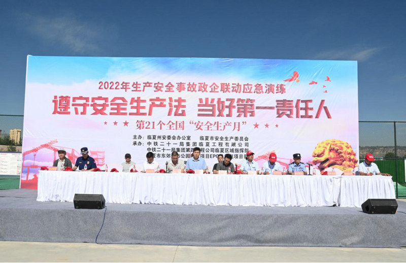 6月29日,由臨夏州安委會(huì)辦公室、臨夏市安委會(huì)主辦,中鐵二十一局臨夏工程公司、四公司臨夏區(qū)域指揮部、臨夏市東郊生態(tài)公園建設(shè)項(xiàng)目EPC總承包項(xiàng)目部聯(lián)合承辦的2022年生產(chǎn)安全事故政企聯(lián)動(dòng)應(yīng)急演練活動(dòng)在臨夏市東郊生態(tài)公園建設(shè)項(xiàng)目EPC總承包項(xiàng)目施工現(xiàn)場如期展開。