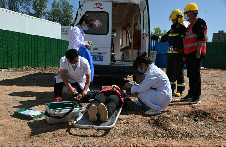 此次演練模擬三個(gè)場景進(jìn)行,分別為臨夏市東郊生態(tài)公園建設(shè)項(xiàng)目施工人員未正確使用勞動(dòng)保護(hù)用品,造成在拆除模板作業(yè)中發(fā)生高處墜落;因近期臨夏市連續(xù)降雨造成洪水蔓延,威脅下游施工人員生命財(cái)產(chǎn)安全;勞務(wù)人員生活區(qū)域因電器操作不當(dāng)造成電線短路發(fā)生火災(zāi)事故,造成多名施工人員不同程度受傷、埋壓、被困,生命安全受到嚴(yán)重威脅。