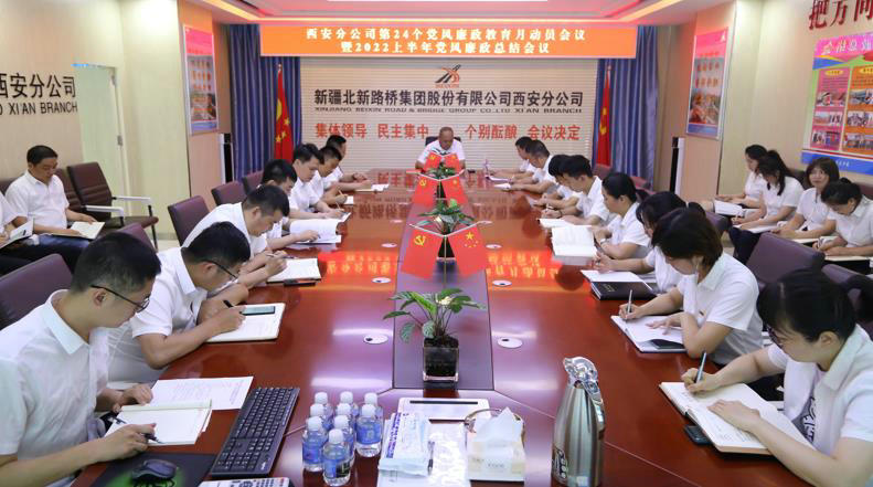 7月8日,北新路橋集團(tuán)西安分公司召開第24個(gè)黨風(fēng)廉政教育月動(dòng)員暨2022年上半年黨風(fēng)廉政總結(jié)視頻會(huì)議。深入學(xué)習(xí)貫徹習(xí)近平總書記關(guān)于黨的自我革命戰(zhàn)略思想和全面從嚴(yán)治黨重要論述,縱深推進(jìn)全面從嚴(yán)治黨、加強(qiáng)黨風(fēng)廉政建設(shè)和反腐敗斗爭(zhēng),為黨的二十大勝利召開營(yíng)造風(fēng)清氣正的政治環(huán)境。
