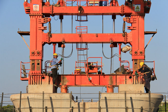 下一步,架橋機(jī)將在宜賓東制梁場內(nèi)利用運(yùn)梁便道、搬梁機(jī)縱移通道及部分臺(tái)座位置完成調(diào)頭,準(zhǔn)備開啟大里程昆明方向剩余的192孔箱梁架設(shè)。
