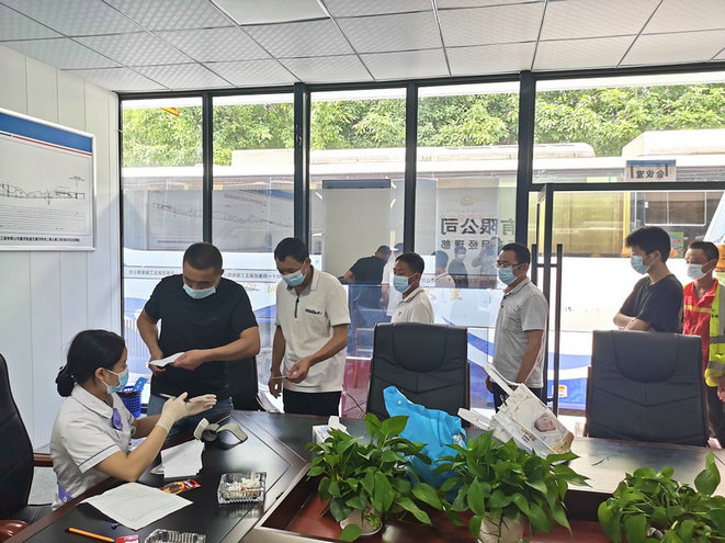 項目部聯(lián)合重慶兩江新區(qū)第一人民醫(yī)院禮嘉分院開展“健康進工地,夏日沁人心”體檢活動,為一線工人進行體檢,對患有高血壓、恐高癥人員不安排高空作業(yè)。并針對隧道施工粉塵危害大的情況,項目嚴格要求作業(yè)人員作業(yè)時不管天氣炎熱必須佩戴個人安全防護用品,同時采用噴淋設備,對現(xiàn)場粉塵進行處理,保障作業(yè)環(huán)境安全可控,確保工人身體健康,穩(wěn)步推進施工生產(chǎn)。