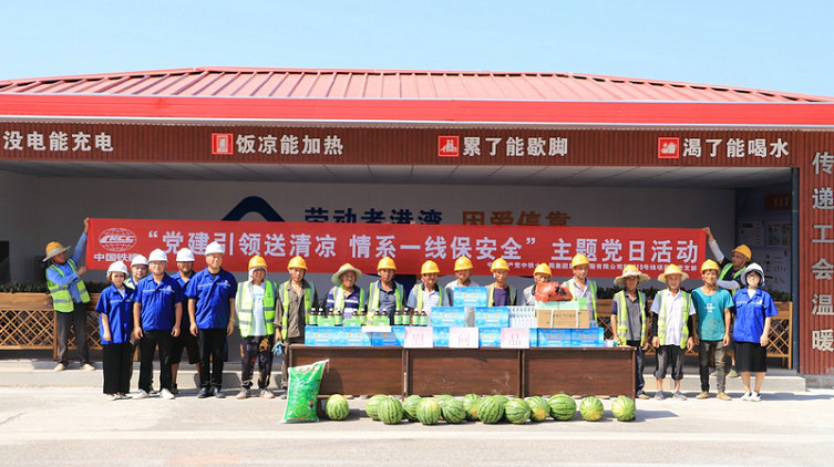 項目部黨支部開展“黨建引領送清涼,情系一線保安全”主題黨日活動,給一線作業(yè)人員送去綠豆湯、西瓜、涼茶、防暑藥品等清涼“大禮包”。