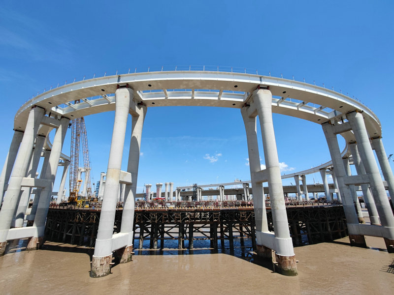由鐵道兵5師22團(tuán)演變過來的中鐵十五局集團(tuán)二公司,在浙江省重點(diǎn)建設(shè)項(xiàng)目—浙江杭(州)甬(寧波)一期高速公路全長14.6公里、總投資21.547億元的濱海高架和亞洲最大的海上立交—濱?;ネ屑~項(xiàng)目建設(shè)中,充分發(fā)揮“特別能吃苦、特別能戰(zhàn)斗、特別能奉獻(xiàn)”的鐵道兵精神,以科技為先導(dǎo),敢于挑戰(zhàn)不可能,攻克多道難關(guān),插入海底直徑1.8米—2.5米、平均98米長的鋼護(hù)筒1739根,樁基、墩身施工3次成功下穿著名的金塘大橋;安全通過海底盾構(gòu)、直徑4.5米的輸油管道等17條管線;811座6.8米—25.5米的橋墩完成70%;濱海高架主體工程順利完工,濱?;ネ芰?0片,施工安全質(zhì)量、進(jìn)度環(huán)保在業(yè)主、省市交通等部門歷次檢查中,均受到好評,被浙江省交通工程管理中心評為2021年平安工地省級示范合同段,榮獲寧波市交通局授予的2020年、2021年平安工地示范合同段稱號,今年五四前夕,榮獲共青團(tuán)寧波市委交通運(yùn)輸2022年度青年文明號稱號。