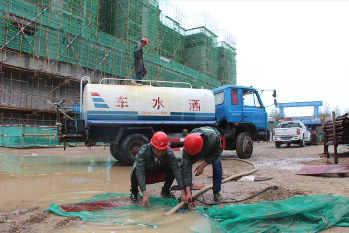 在巡查發(fā)現(xiàn)基坑積水情況,該項(xiàng)目立即安排人員及設(shè)備進(jìn)行抽排,疏通基坑四周排水溝并加固土壟,最后覆蓋防水雨布進(jìn)行遮擋;同時(shí),在施工駐地活動(dòng)板房周圍環(huán)鋪塑料布,填充、堆疊防汛沙袋,防止流水持續(xù)侵蝕地基。經(jīng)過(guò)四個(gè)小時(shí)雨中“搶險(xiǎn)”,成功消除安全隱患。