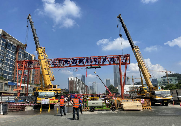 2022年7月23日,時(shí)值大暑氣節(jié),東莞市軌道交通1號(hào)線新源路鋪軌基地呈現(xiàn)出一片忙而不亂的畫面,在現(xiàn)場所有員工與專業(yè)設(shè)備安裝技術(shù)工人的共同奮戰(zhàn)下,隨著龍門吊準(zhǔn)備就緒,汽車吊司機(jī)收到指令下達(dá)后,汽車吊緩緩將龍門吊裝到了預(yù)定位置。這標(biāo)志著東莞市軌道交通1號(hào)線工程建設(shè)進(jìn)度實(shí)現(xiàn)了又一次“大跨越”。