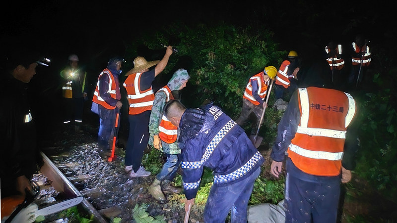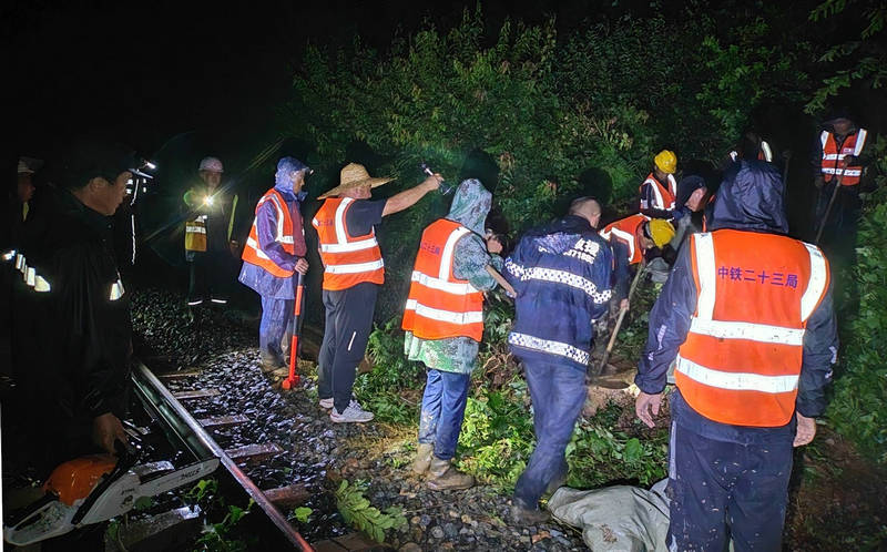 “今天傍晚的持續(xù)強降雨導(dǎo)致渾白鐵路三處路塹邊坡滑坡,危及鐵路行車安全,請求支援”。7月23日20時19分,隨著一陣急促的手機鈴聲響起,中鐵二十三局集團(tuán)沈白高鐵項目部三分部接到了通化鐵路工務(wù)段泉陽線路車間書記李同旭的求援電話,分部經(jīng)理郭曉斌聞“汛”而動,迅速調(diào)集車輛、集結(jié)人員,火速奔赴水害現(xiàn)場......
